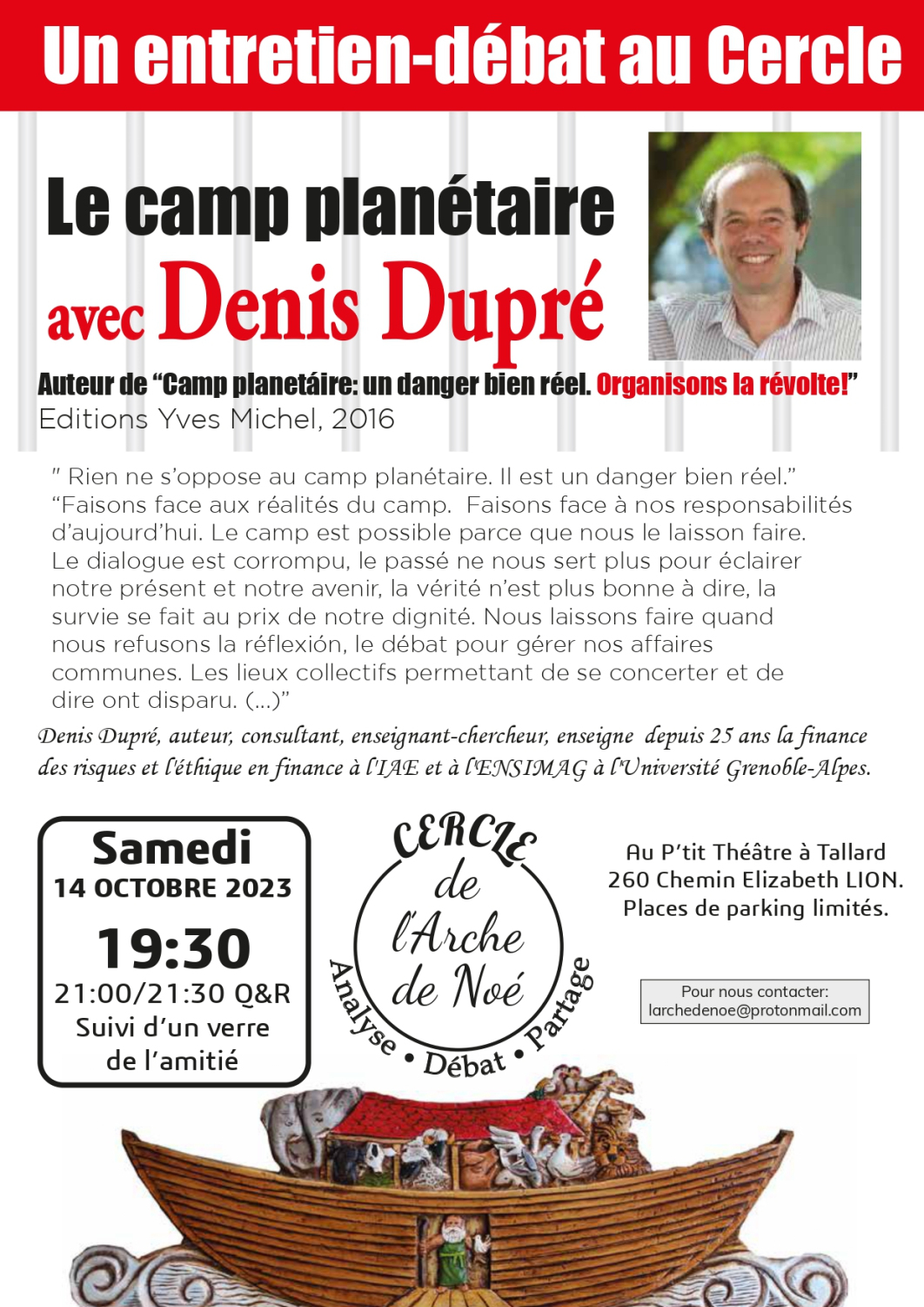 14 Octobre 2023 : "Le camp planétaire" avec Denis DUPRE